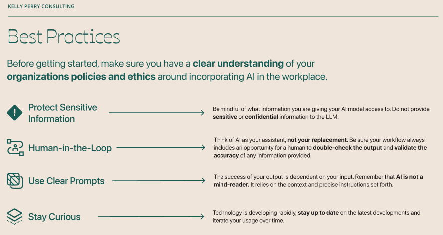 Brandi’s team is excited to incorporate AI into their workflow, but the organization has been cautious to adopt. It’s important for businesses, especially those that deal with highly sensitive information, to have a clear understanding of how the LLM will store and reference data.