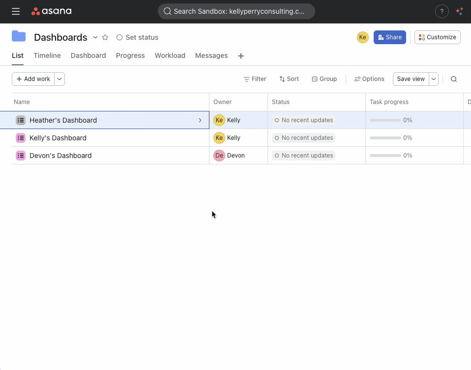 BONUS: You can set up a workflow that any future “Dashboard” projects for new team members are automatically added to this Portfolio!Confirm Project Owner